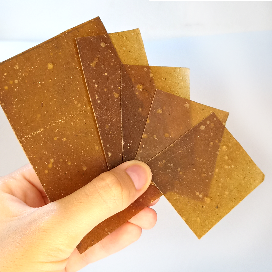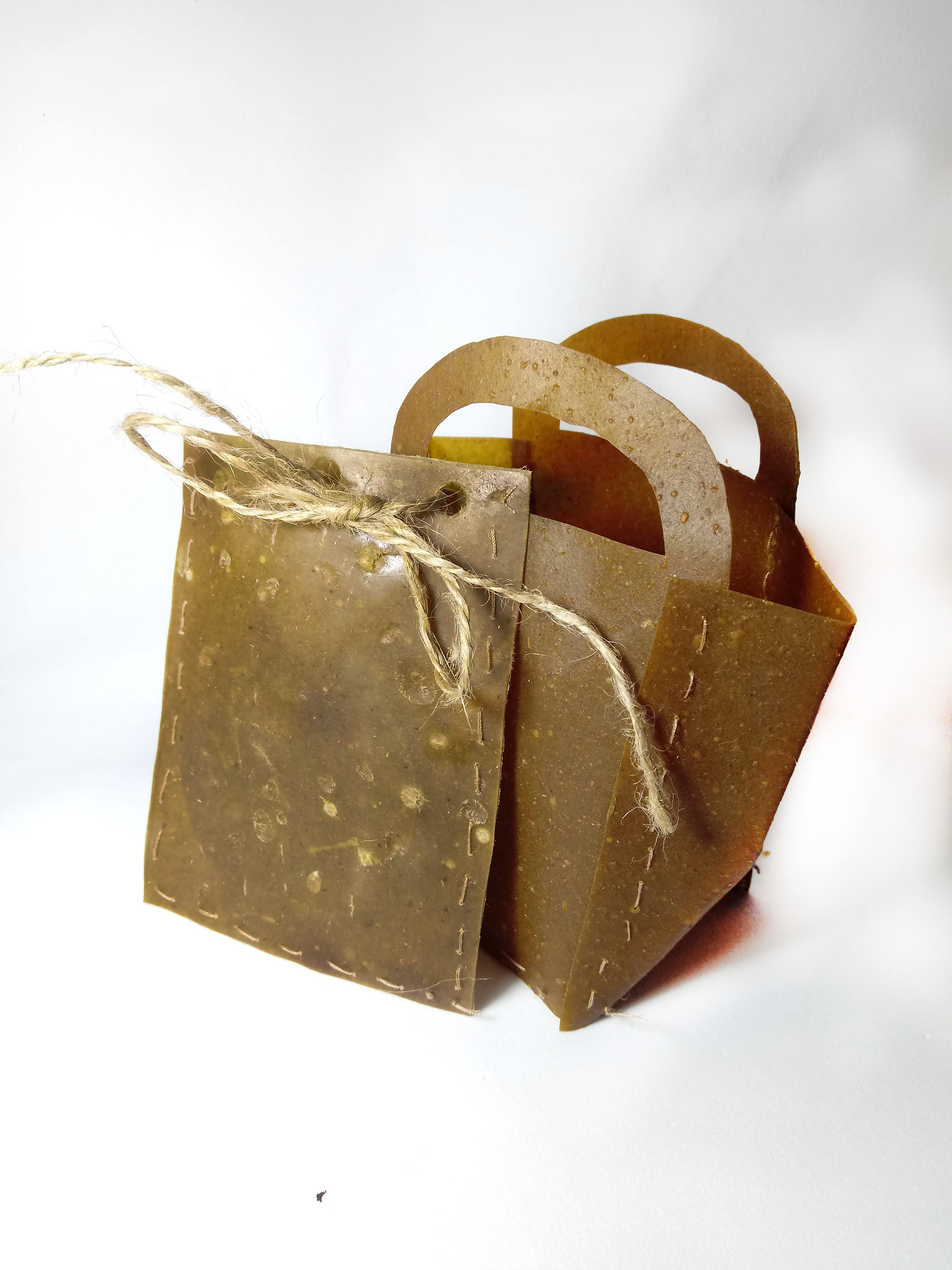 Modelos de produtos feitos com o biomaterial de amido de mandioca e resíduos celulósicos